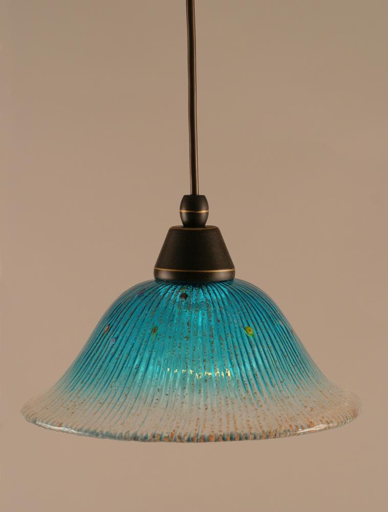 Toltec Lighting 22-DG-438 Cord Hung Mini Pendant Shown In Dark Granite Finish With 10 Teal Crystal Glass