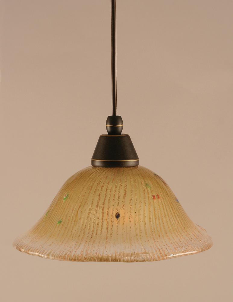 Toltec Lighting 22-DG-730 Cord Hung Mini Pendant Shown In Dark Granite Finish With 10 Amber Crystal Glass
