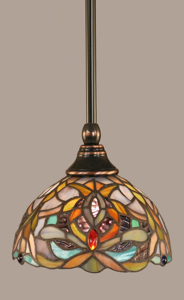 Toltec Lighting 23-BC-9905 Stem Hung Mini Pendant With Hang Straight Swivel Shown In Black Copper Finish With 7? Kaleidoscope Art Glass