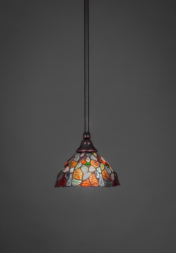 Toltec Lighting 23-BC-9955 Stem Hung Mini Pendant With Hang Straight Swivel Shown In Black Copper Finish With 7? Blue Mosaic Art Glass