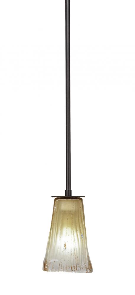 Toltec Lighting 573-DG-630 Apollo Stem Hung Mini Pendant With Hang Straight Swivel Shown In Dark Granite Finish With 5 Square Amber Crystal Glass