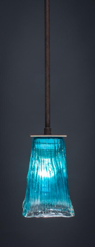 Toltec Lighting 573-DG-635 Apollo Stem Hung Mini Pendant With Hang Straight Swivel Shown In Dark Granite Finish With 5 Square Teal Crystal Glass