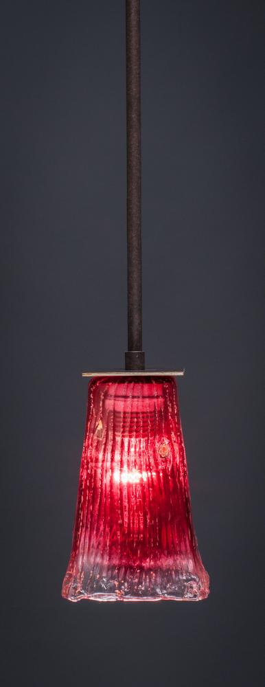 Toltec Lighting 573-DG-636 Apollo Stem Hung Mini Pendant With Hang Straight Swivel Shown In Dark Granite Finish With 5 Square Raspberry Crystal Glass
