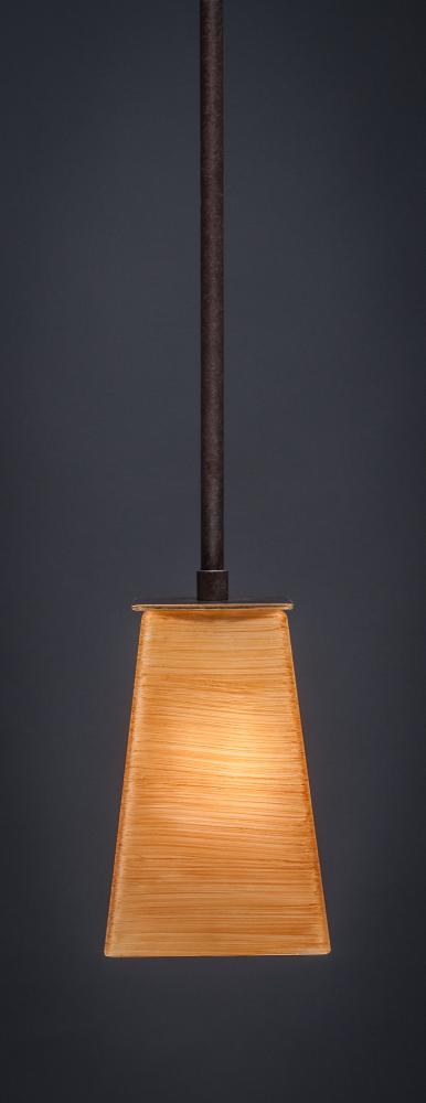 Toltec Lighting 573-DG-670 Apollo Stem Hung Mini Pendant With Hang Straight Swivel Shown In Dark Granite Finish With 5 Square Cayenne Linen Glass