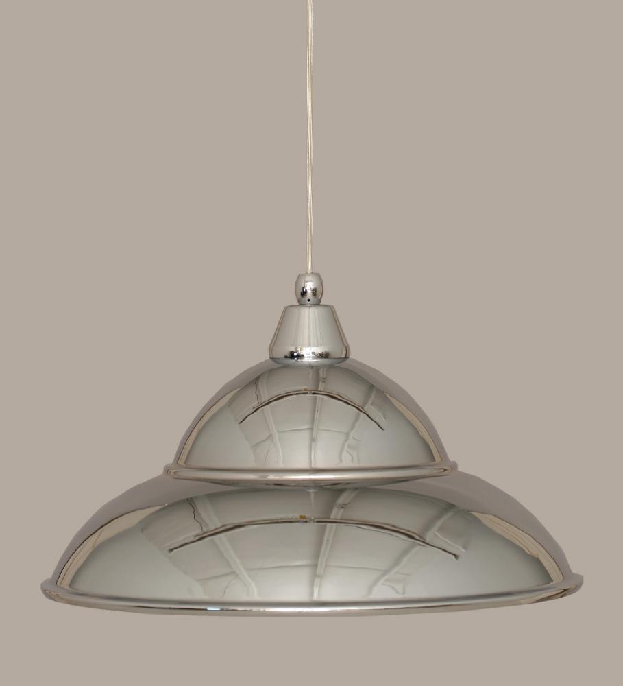 Toltec Lighting 22-CH-429 Cord Hung Mini Pendant Shown In Chrome Finish With 16? Chrome Double Bubble Metal Shade