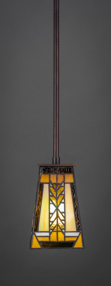 Toltec Lighting 573-DG-9864 Apollo Stem Hung Mini Pendant With Hang Straight Swivel Shown In Dark Granite Finish With 5 Square Santa Cruz Art Glass