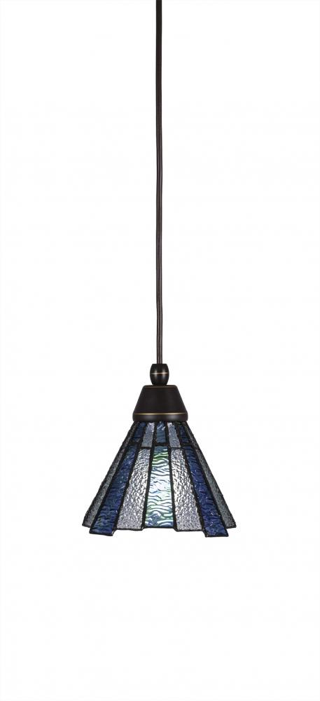 Toltec Lighting 22-DG-9325 Cord Hung Mini Pendant Shown In Dark Granite Finish With 7 Sea Ice Art Glass