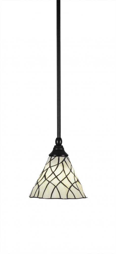 Toltec Lighting 23-MB-9115 Stem Hung Mini Pendant With Hang Straight Swivel Shown In Matte Black Finish With 7 Sandhill Art Glass