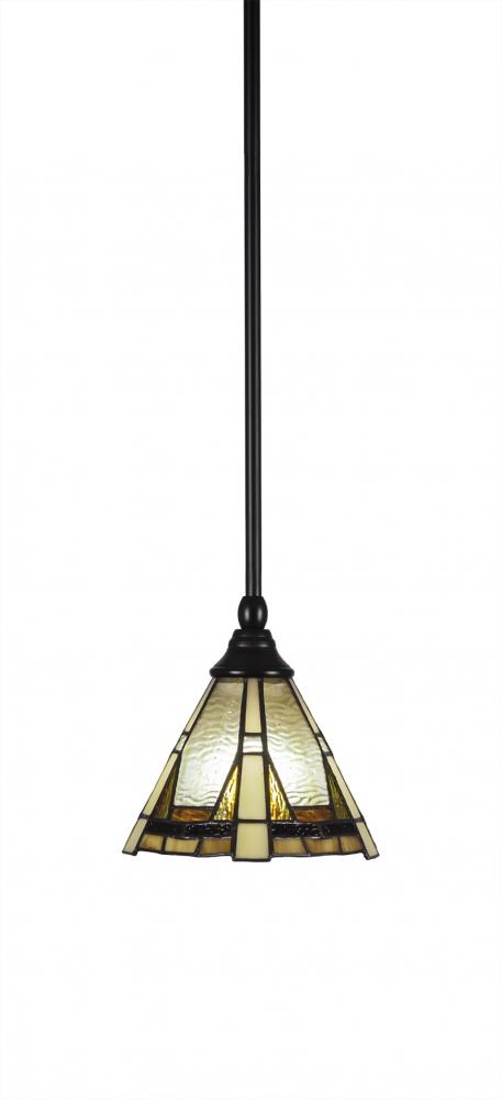 Toltec Lighting 23-MB-9345 Stem Hung Mini Pendant With Hang Straight Swivel Shown In Matte Black Finish With 7 Zion Art Glass