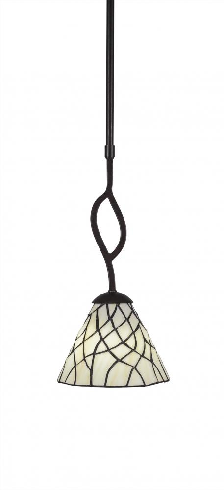 Toltec Lighting 240-DG-9115 Revo Stem Hung Mini Pendant With Hang Straight Swivel Shown In Dark Granite Finish With 7 Sandhill Art Glass