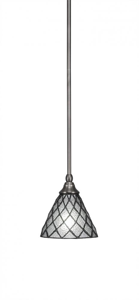 Toltec Lighting 23-BN-9185 Stem Hung Mini Pendant With Hang Straight Swivel Shown In Brushed Nickel Finish With 7 Diamond Ice Art Glass