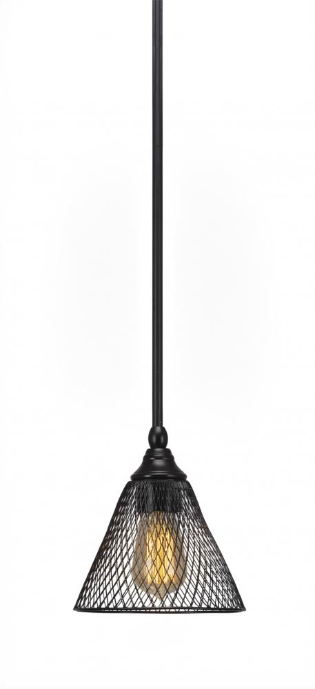 Toltec Lighting 23-MB-805-LED18C Stem Hung Mini Pendant With Hang Straight Swivel Shown In Matte Black Finish With 7 Matte Black Cone Mesh Metal Shade