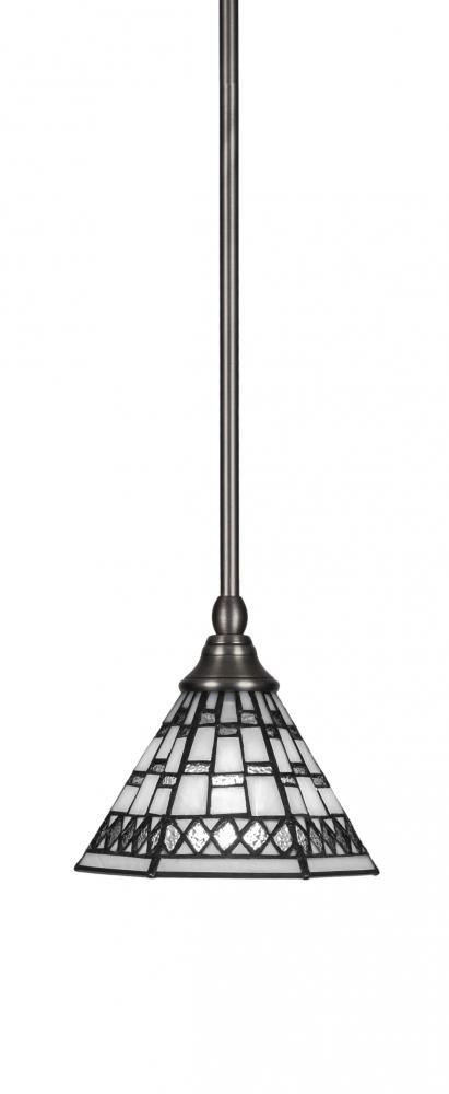 Toltec Lighting 23-BN-9105 Stem Hung Mini Pendant With Hang Straight Swivel Shown In Brushed Nickel Finish With 7 Pewter Art Glass