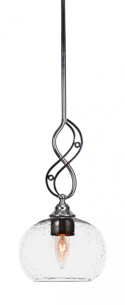 Jazz Mini Pendant With Hang Straight Swivel Shown In Chrome Finish With 7 Clear Bubble Glass
