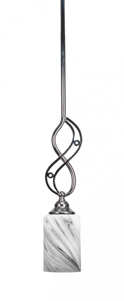 Jazz Mini Pendant With Hang Straight Swivel Shown In Chrome Finish With 4 Onyx Swirl Glass
