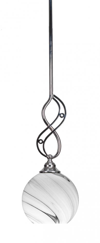 Jazz Mini Pendant With Hang Straight Swivel Shown In Chrome Finish With 5.75 Onyx Swirl Glass
