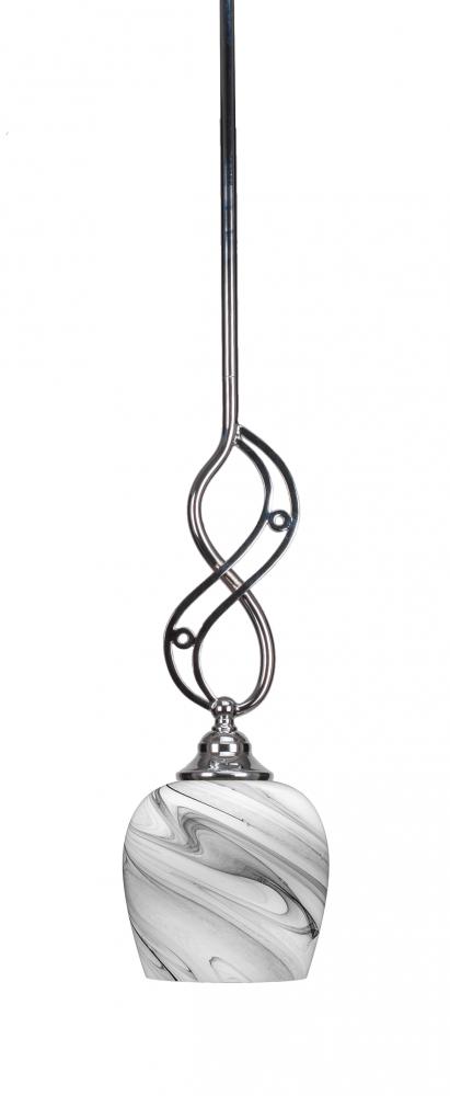 Toltec Lighting 232-CH-4819 Jazz Stem Hung Mini Pendant With Hang Straight Swivel Shown In Chrome Finish With 6 Onyx Swirl Glass