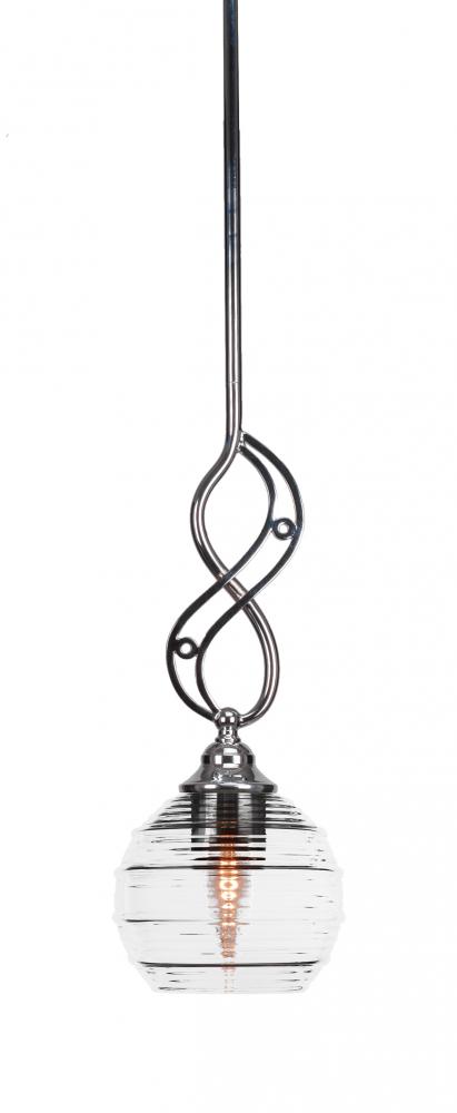Toltec Lighting 232-CH-5110 Jazz Stem Hung Mini Pendant With Hang Straight Swivel Shown In Chrome Finish With 6 Clear Ribbed Glass