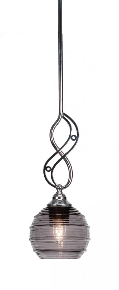 Toltec Lighting 232-CH-5112 Jazz Stem Hung Mini Pendant With Hang Straight Swivel Shown In Chrome Finish With 6 Smoke Ribbed Glass