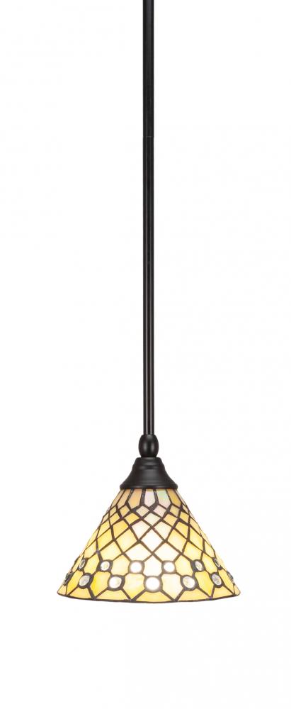 Toltec Lighting 23-MB-9415 Stem Hung Mini Pendant With Hang Straight Swivel Shown In Matte Black Finish With 7 Starlight Art Glass