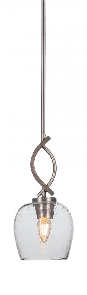 Toltec Lighting 2901-GPDW-4810 Monterey Stem Hung Mini Pendant With Hang Straight Swivel Shown In Graphite & Painted Distressed Wood-look Metal Finish With 6? Clear Bubble Glass