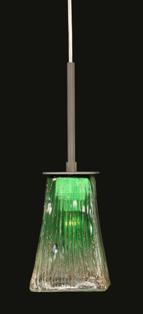 Toltec Lighting 572-GP-637 Apollo Cord Hung Mini Pendant Shown In Graphite Finish With 5 Square Kiwi Green Crystal Glass