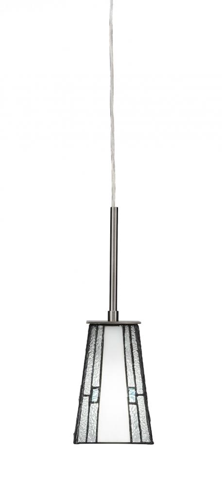 Toltec Lighting 572-GP-9534 Apollo Cord Hung Mini Pendant Shown In Graphite Finish With 5 Square Sky Ice Art Glass