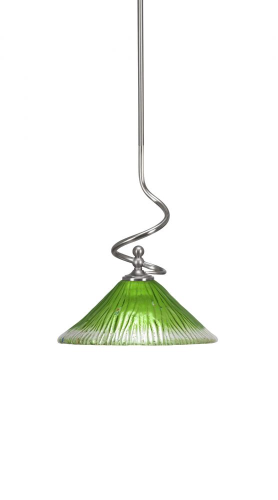Toltec Lighting 901-BN-437 Capri Stem Hung Mini Pendant With Hang Straight Swivel Shown In Brushed Nickel Finish With 10 Kiwi Green Crystal Glass