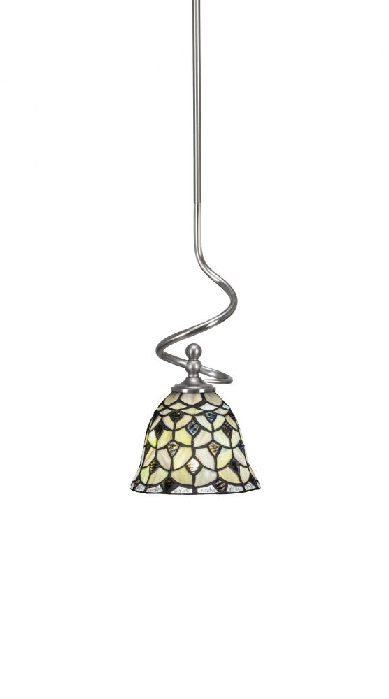 Toltec Lighting 901-BN-9965 Capri Stem Hung Mini Pendant With Hang Straight Swivel Shown In Brushed Nickel Finish With 7 Crescent Art Glass