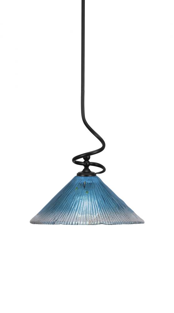 Capri Stem Mini Pendant With Hang Straight Swivel Shown In Matte Black Finish With 12 Teal Crystal Glass