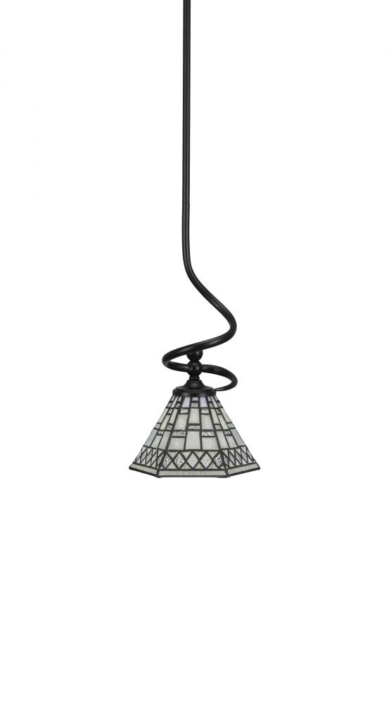 Capri Stem Mini Pendant With Hang Straight Swivel Shown In Matte Black Finish With 7 Pewter Art Glass