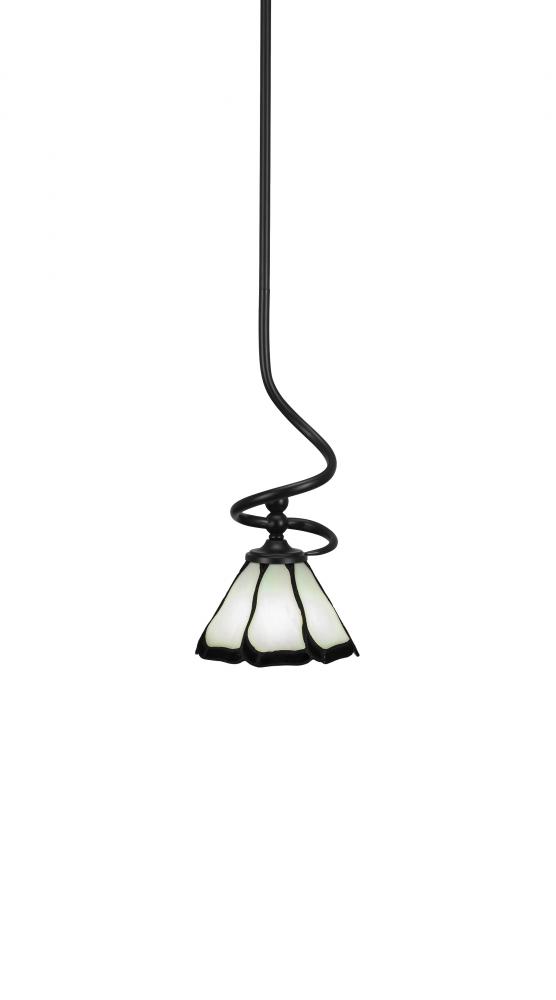 Capri Stem Mini Pendant With Hang Straight Swivel Shown In Matte Black Finish With 7 Pearl & Black Flair Art Glass