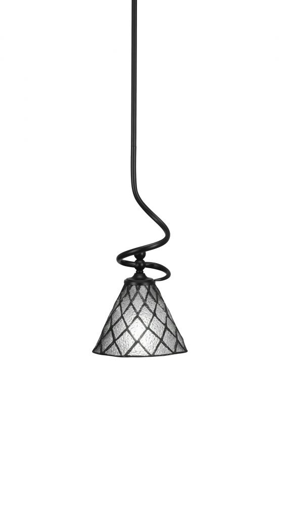 Capri Stem Mini Pendant With Hang Straight Swivel Shown In Matte Black Finish With 7 Diamond Ice Art Glass