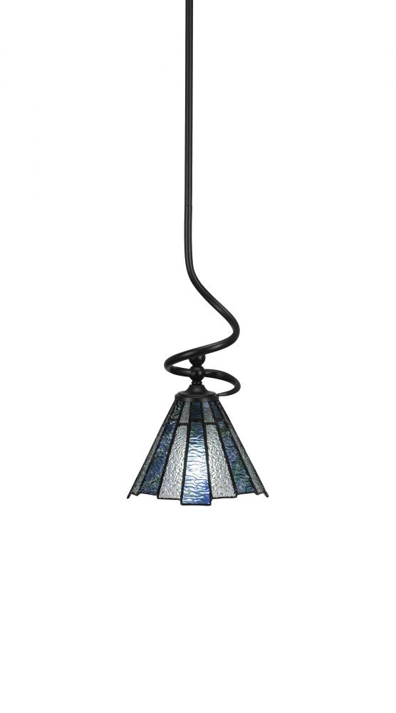 Capri Stem Mini Pendant With Hang Straight Swivel Shown In Matte Black Finish With 7 Sea Ice Art Glass