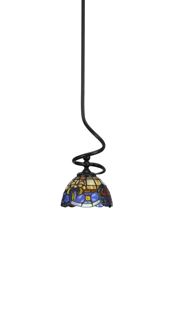 Toltec Lighting 901-MB-9355 Capri Stem Hung Mini Pendant With Hang Straight Swivel Shown In Matte Black Finish With 7 Sierra Art Glass