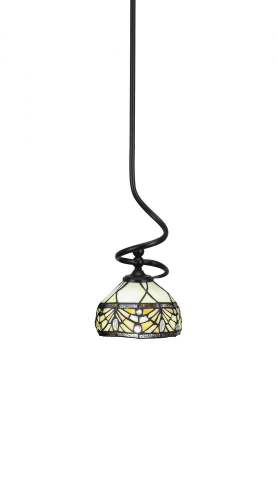 Toltec Lighting 901-MB-9485 Capri Stem Hung Mini Pendant With Hang Straight Swivel Shown In Matte Black Finish With 7 Royal Merlot Art Glass