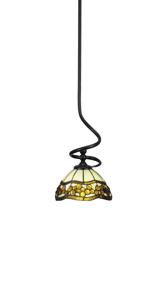 Toltec Lighting 901-MB-9975 Capri Stem Hung Mini Pendant With Hang Straight Swivel Shown In Matte Black Finish With 7 Roman Jewel Art Glass