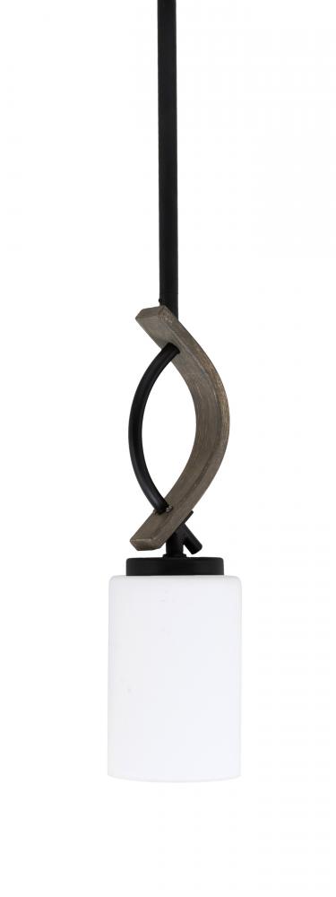 Toltec Lighting 2901-MBDW-310 Monterey 1 Light Mini Pendant Shown In Matte Black & Painted Distressed Wood-look Metal Finish With 4 White Muslin Glass