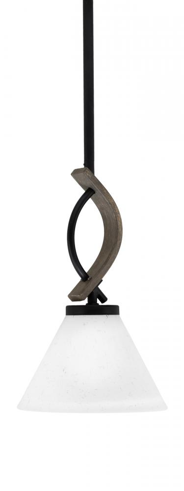 Toltec Lighting 2901-MBDW-312 Monterey 1 Light Mini Pendant Shown In Matte Black & Painted Distressed Wood-look Metal Finish With 7 White Muslin Glass