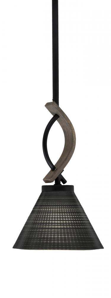 Toltec Lighting 2901-MBDW-4059 Monterey 1 Light Mini Pendant Shown In Matte Black & Painted Distressed Wood-look Metal Finish With 7 Black Matrix Glass