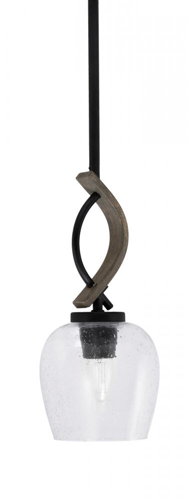 Toltec Lighting 2901-MBDW-4810 Monterey 1 Light Mini Pendant Shown In Matte Black & Painted Distressed Wood-look Metal Finish With 6 Clear Bubble Glass