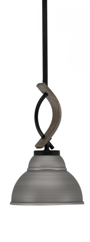 Toltec Lighting 2901-MBDW-427-BN Monterey 1 Light Mini Pendant Shown In Matte Black & Painted Distressed Wood-look Metal Finish With 7 Brushed Nickel Double Bubble Metal Shade
