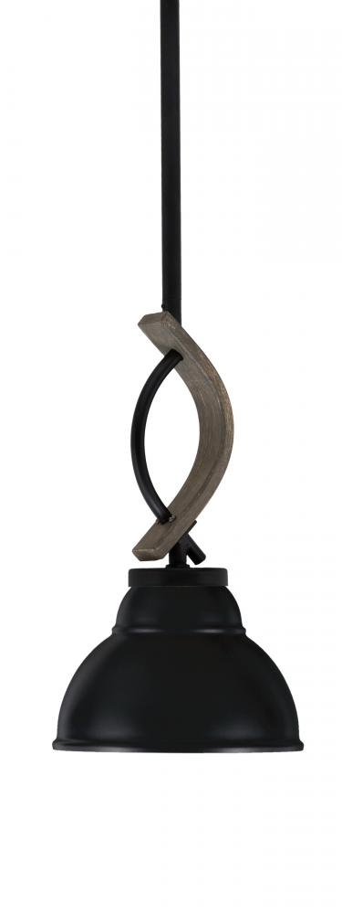 Toltec Lighting 2901-MBDW-427-MB Monterey 1 Light Mini Pendant Shown In Matte Black & Painted Distressed Wood-look Metal Finish With 7 Matte Black Double Bubble Metal Shade