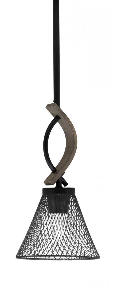 Toltec Lighting 2901-MBDW-805-MB Monterey 1 Light Mini Pendant Shown In Matte Black & Painted Distressed Wood-look Metal Finish With 7 Matte Black Cone Mesh Metal Shade