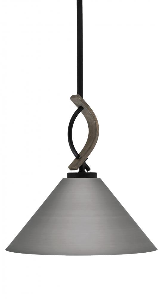 Toltec Lighting 2901-MBDW-420-BN Monterey 1 Light Mini Pendant Shown In Matte Black & Painted Distressed Wood-look Metal Finish With 14 Brushed Nickel Cone Metal Shade