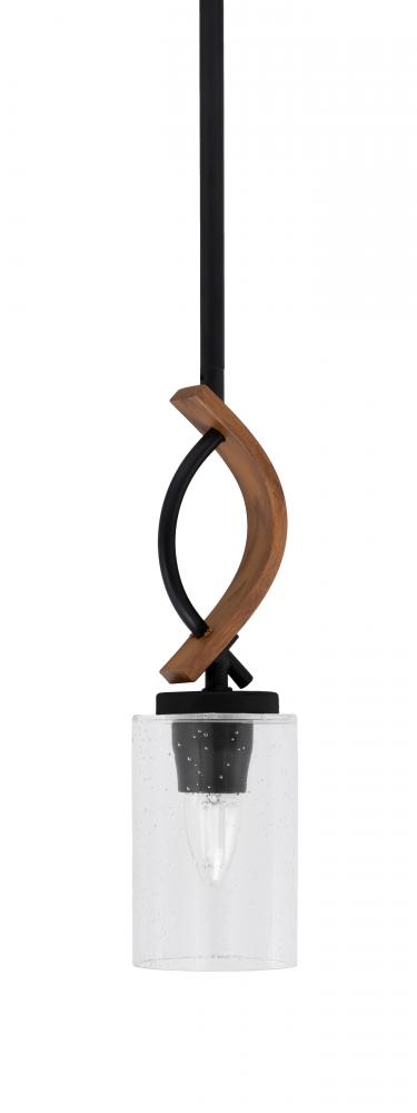 Toltec Lighting 2901-MBWG-300 Monterey 1 Light Mini Pendant Shown In Matte Black & Painted Wood-look Metal Finish With 4 Clear Bubble Glass