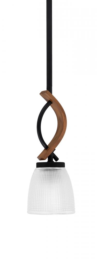 Toltec Lighting 2901-MBWG-500 Monterey 1 Light Mini Pendant Shown In Matte Black & Painted Wood-look Metal Finish With 5 Clear Ribbed Glass