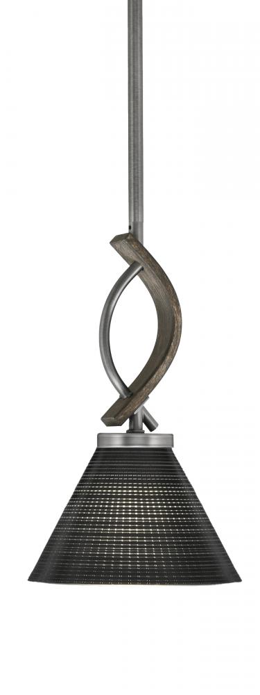 Toltec Lighting 2901-GPDW-4059 Monterey 1 Light Mini Pendant Shown In Graphite & Painted Distressed Wood-look Metal Finish With 7 Black Matrix Glass