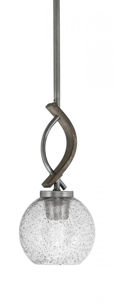 Toltec Lighting 2901-GPDW-4102 Monterey 1 Light Mini Pendant Shown In Graphite & Painted Distressed Wood-look Metal Finish With 5.75 Smoke Bubble Glass