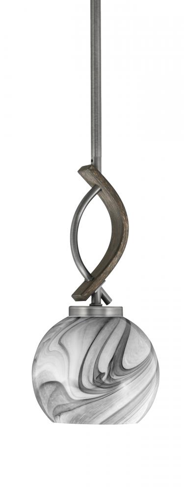 Toltec Lighting 2901-GPDW-4109 Monterey 1 Light Mini Pendant Shown In Graphite & Painted Distressed Wood-look Metal Finish With 5.75 Onyx Swirl Glass